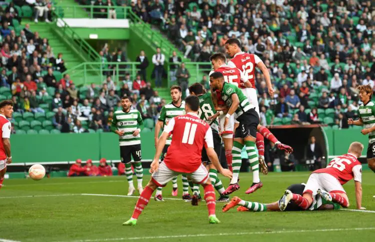 Arsenal goalkeeper Matt Turner had shaky feet and made a couple of blunders but Sporting failed to capitalize on them. They eventually found the equalizer similar to Arsenal’s when Gonçalo Inácio headed home a corner kick in the 34th minute. The match went into the halftime break each team counting one goal.