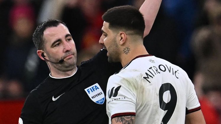Mitrovic opened the scoring on the day, but was shown a straight red card after he tried to grab referee Chris Kavanagh’s arm in the 72nd minute for awarding Erik Ten Hag’s team a penalty.