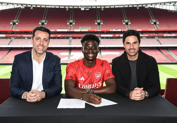 Arsenal winger Bukayo Saka has signed a new contract with the Gunners that will run until June 2027.